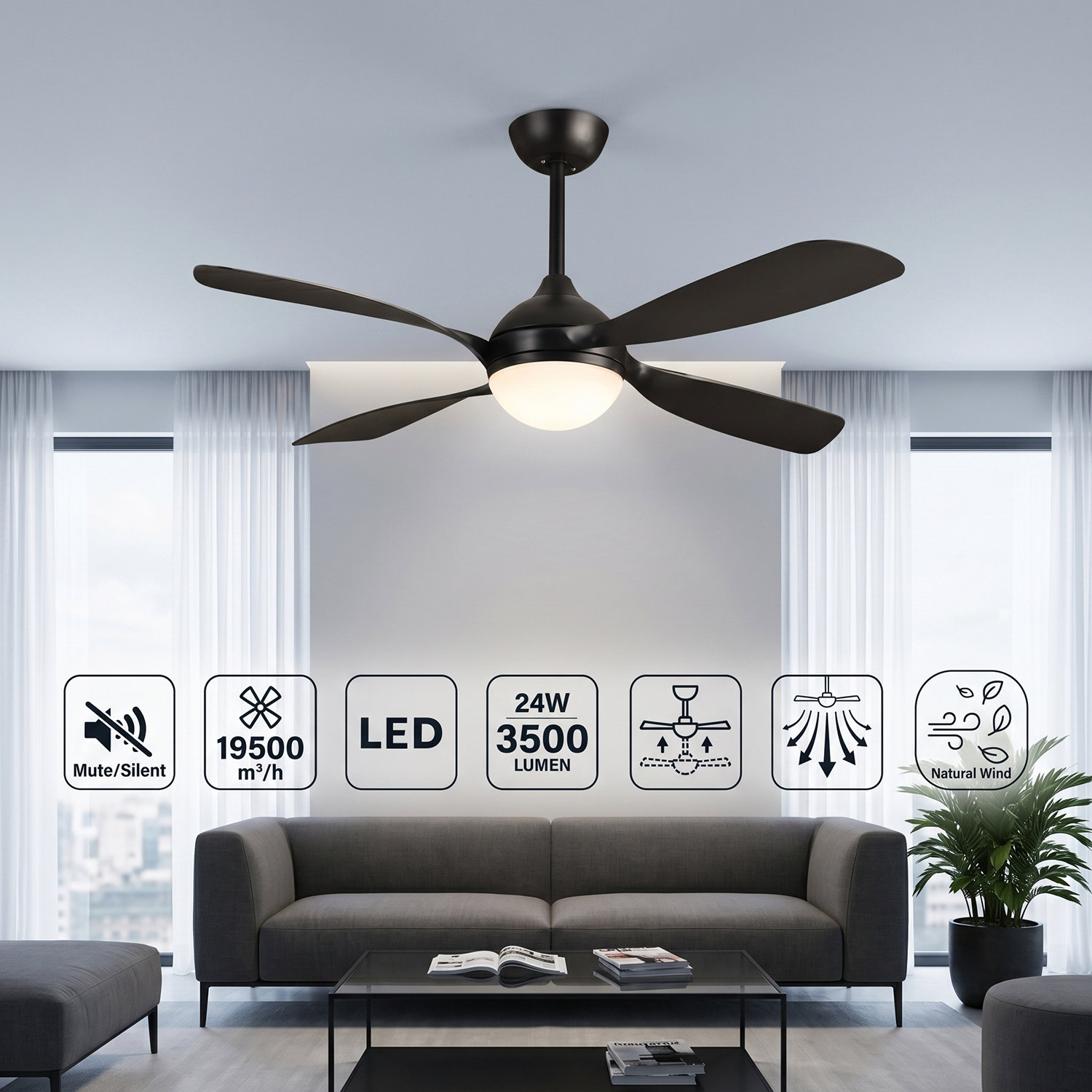Ventilateur avec lampe intégrée