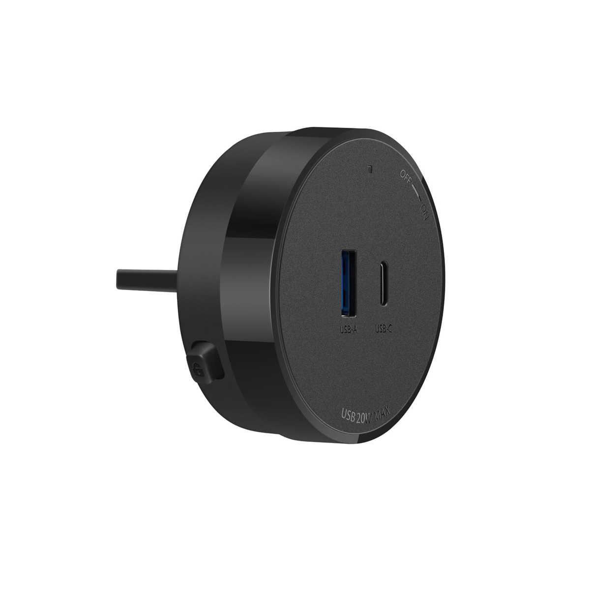 Adaptateur de Charge USB, Mécanisme de Rotation on/Off, USB A et C 20 W Max, Ø62 mm – Noir