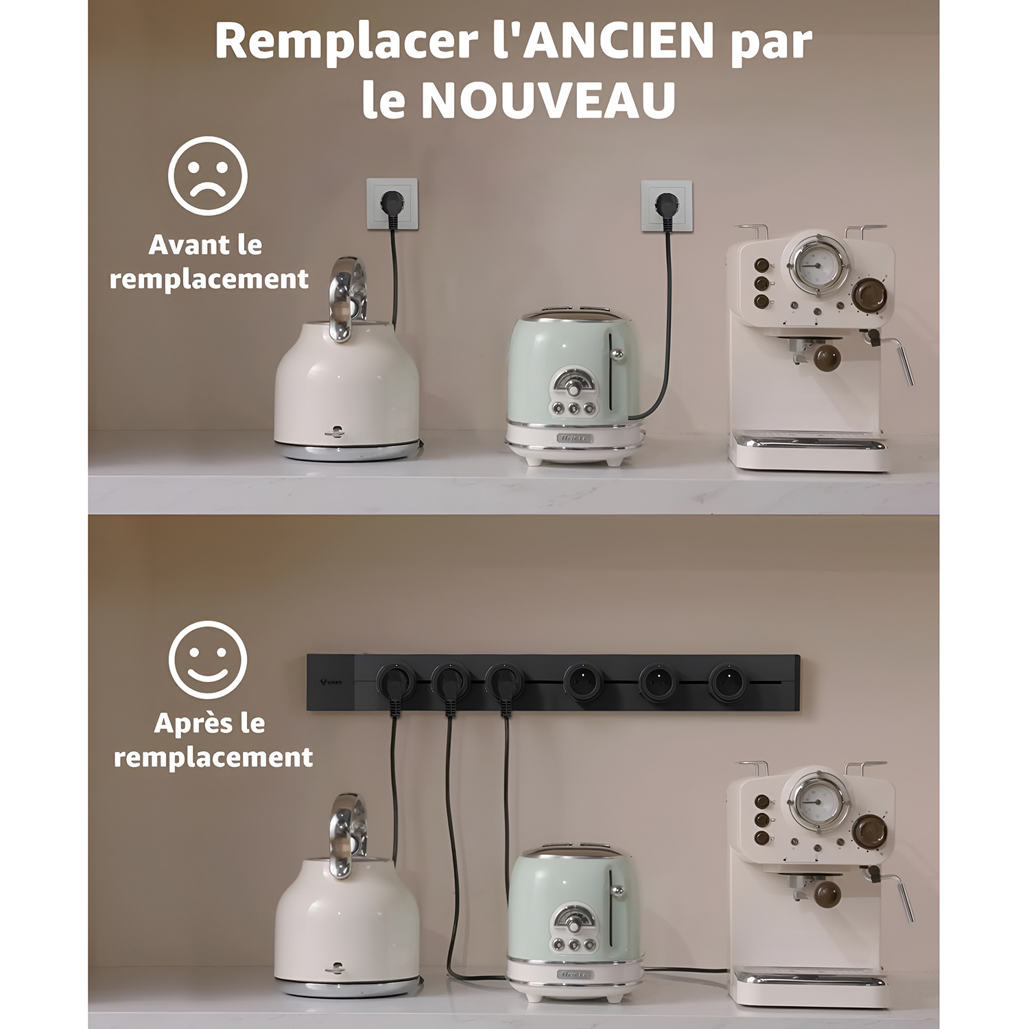 GONEO Multiprise Murale en Saillie, Rail de 75 cm avec 5 Adaptateurs Amovibles, 3680W 16A Max