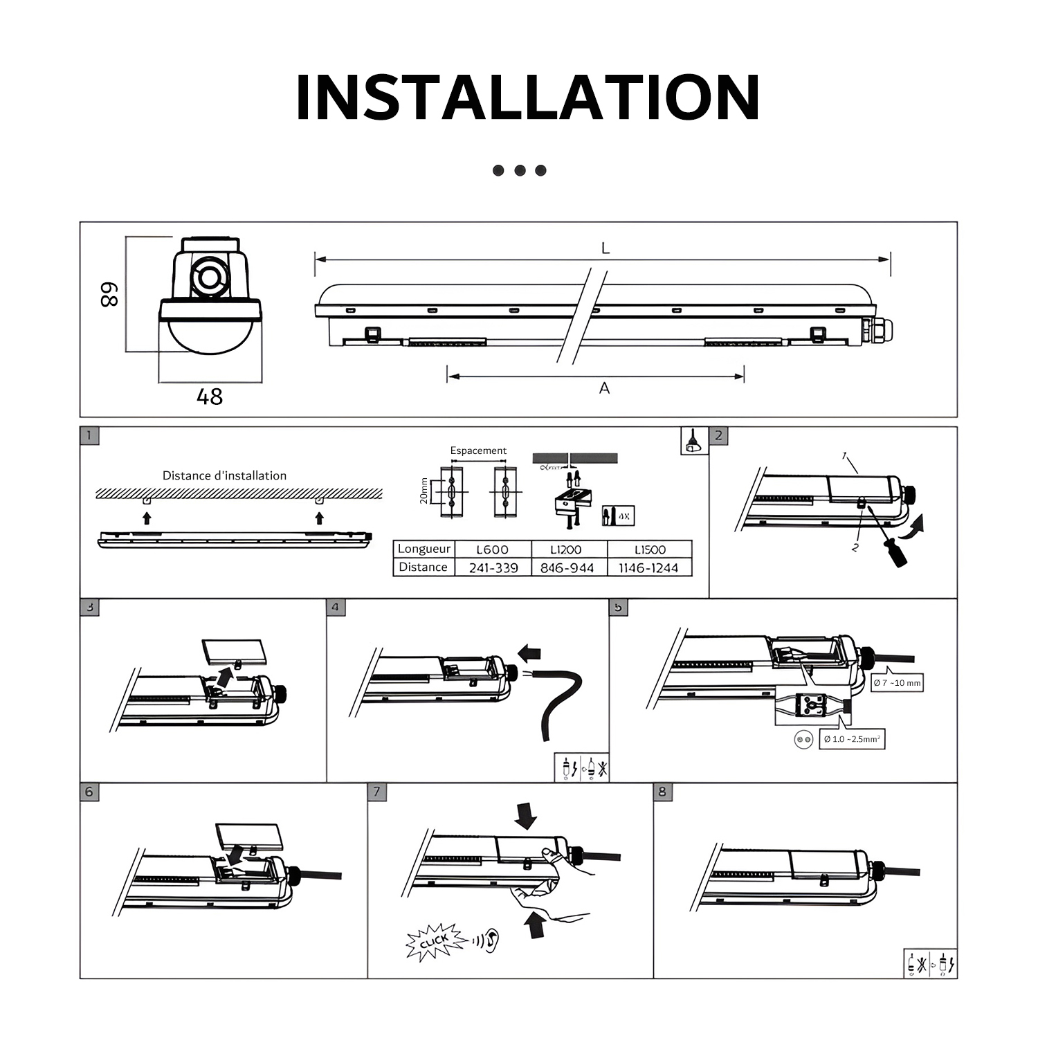 Lot de 10 Réglettes LED étanches 150cm 50W IP65 Interconnectable – Blanc froid 6000K