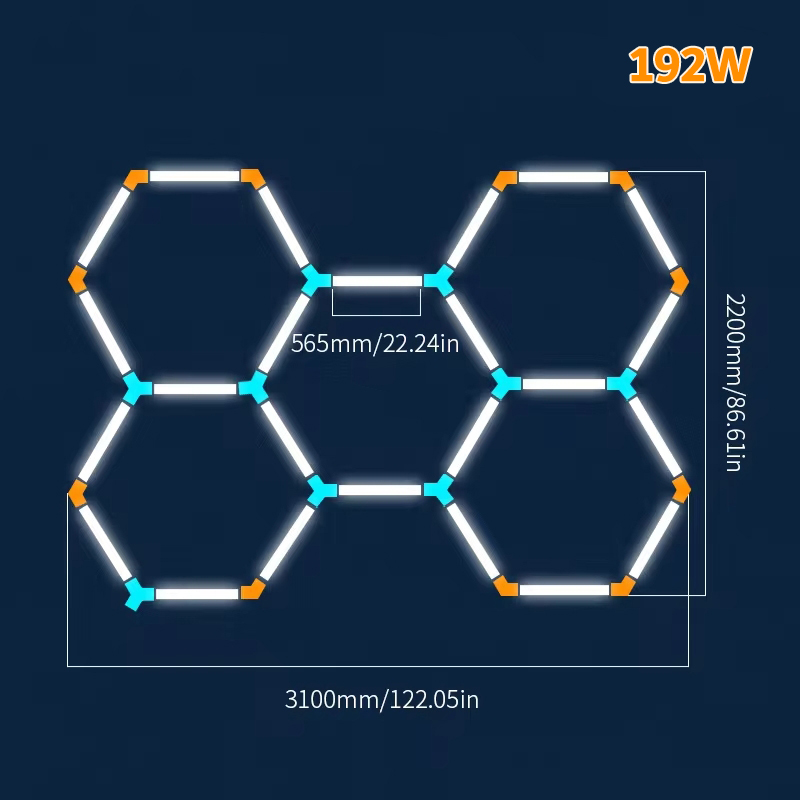 Plafonnier LED hexagonal pour garage, éclairage de plafond LED super lumineux – 6500K blanc froid