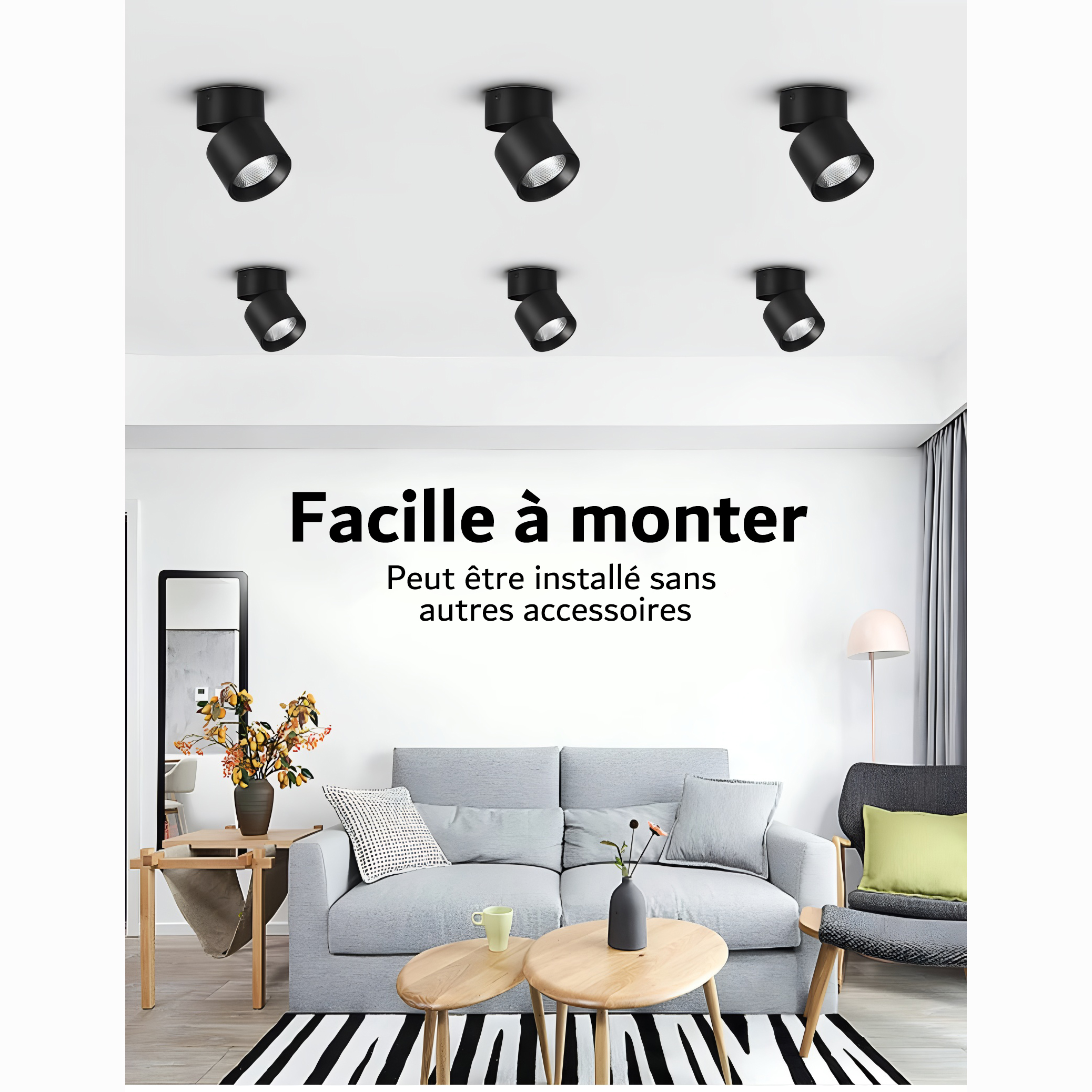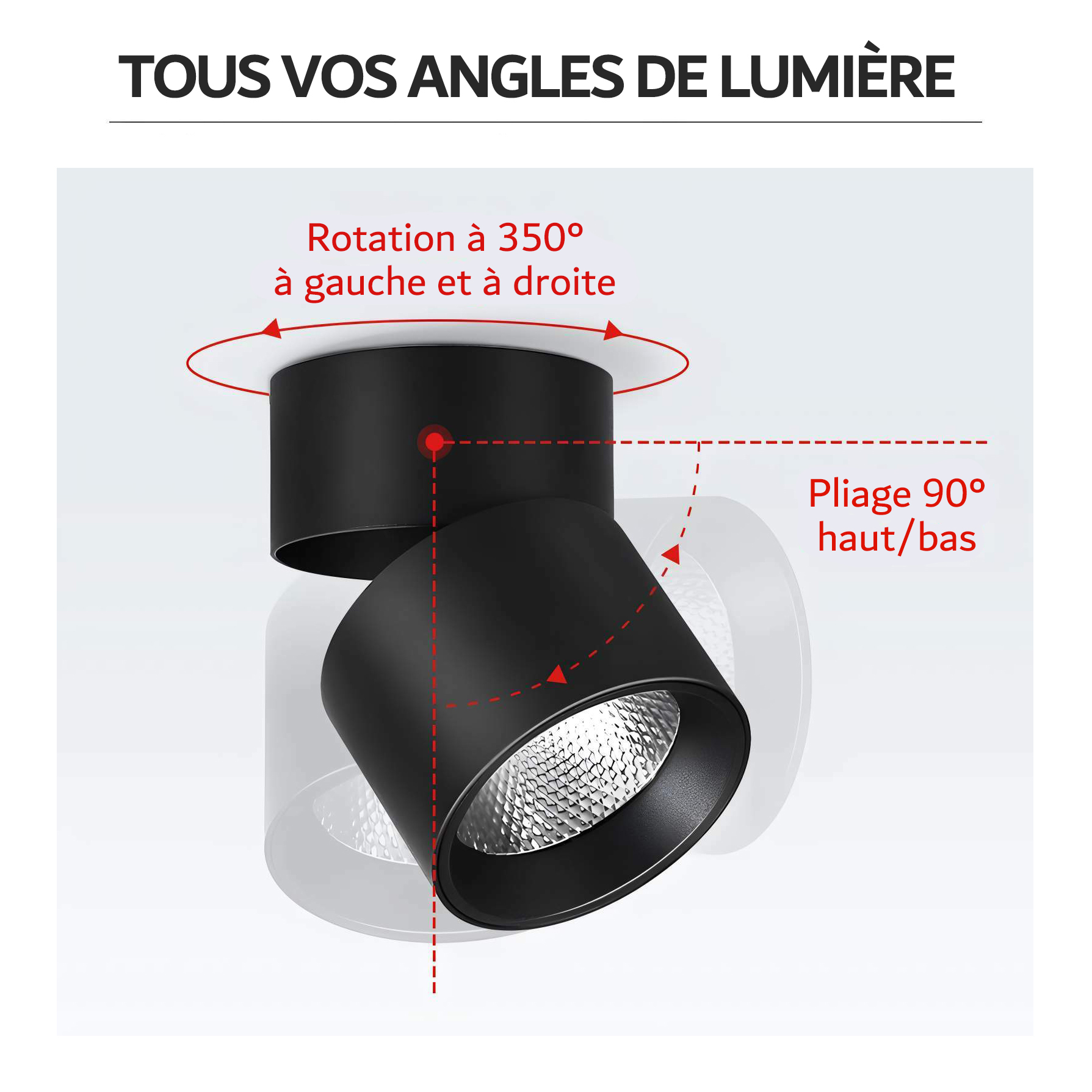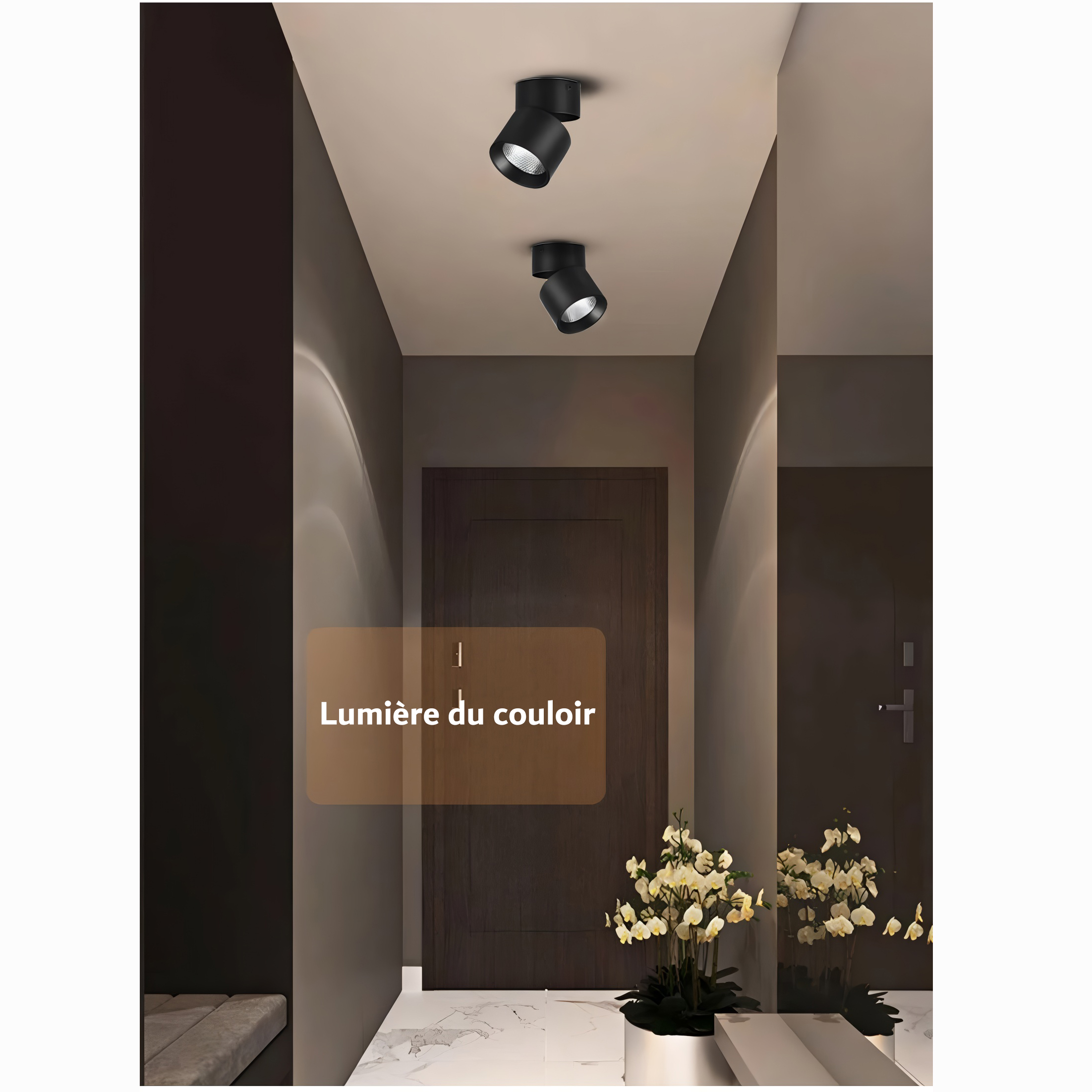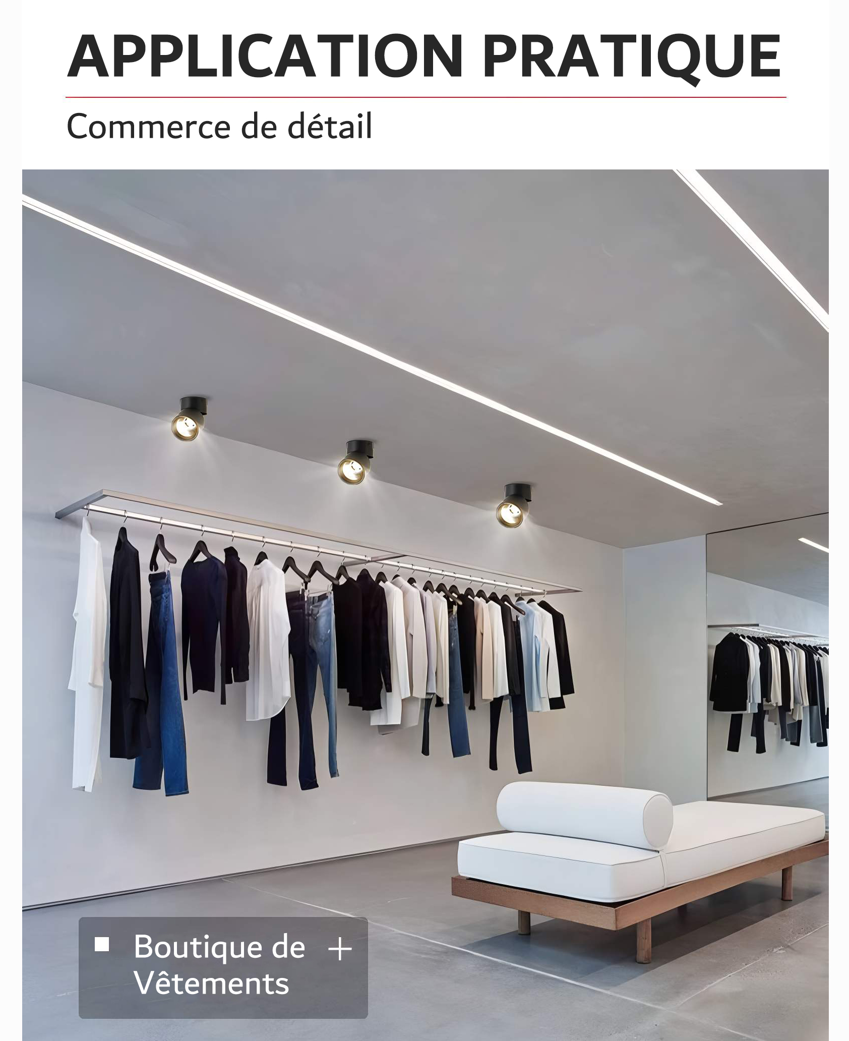 Lumière réglable à angle de 360 ° , réglage flexible et précis de la position d’éclairage. Avec la technologie CCT réglable, ajustez d’un simple geste l’ambiance lumineuse : Passez du blanc chaud 3000K (atmosphère cosy) au blanc froid 6500K (éclairage dynamique). Parfait pour sublimer avec précision vos espaces commerciaux et architecturaux.