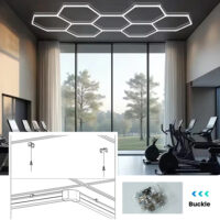 Installation facile : la lampe est simple à assembler ou à remplacer. Vous pouvez combiner plusieurs kits pour créer de plus grandes structures hexagonales. Pour une installation sur plafond dur, fixez la avec les vis prévues. Sur un système en grille, utilisez des attaches en nylon.