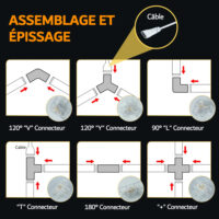 Combinaison flexible : les lampes LED hexagonales peuvent être connectées à l’aide de connecteurs en V ou en Y afin de créer la forme lumineuse idéale.